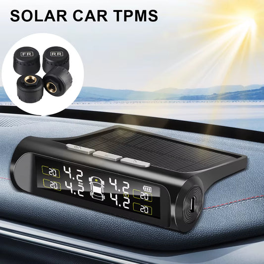 Car TPMS Tyre Pressure Monitoring System Solar Power Auto Security Alarm Systems Tyre Pressure Digital LCD Display